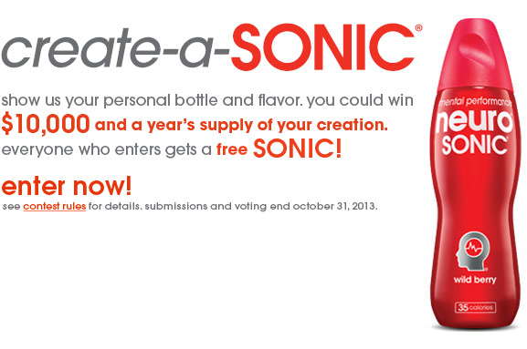 Enter their contest by creating your own Sonic Drink, and you will be able to print a coupon good for a