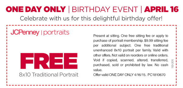 Free 8×10 Portrait at JCPenney Portrait Studios on 4/16