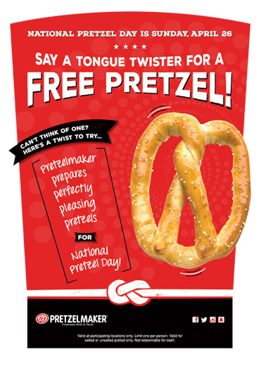 Free pretzel for National Pretzel Day April 26th