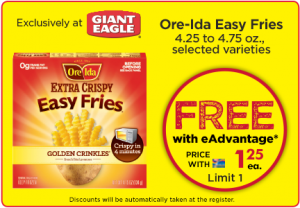 Free Ore-Ida Easy Fries and Coffee at Giant Eagle