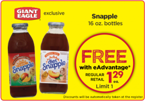 Free 16oz Snapple at Giant Eagle