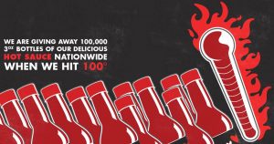 “You did it, hotties! Mark your calendars for Tuesday, February 14. We’ll be giving away 100,000 3oz bottles of our signature Schlotzsky’s hot sauce in restaurants nationwide!*”